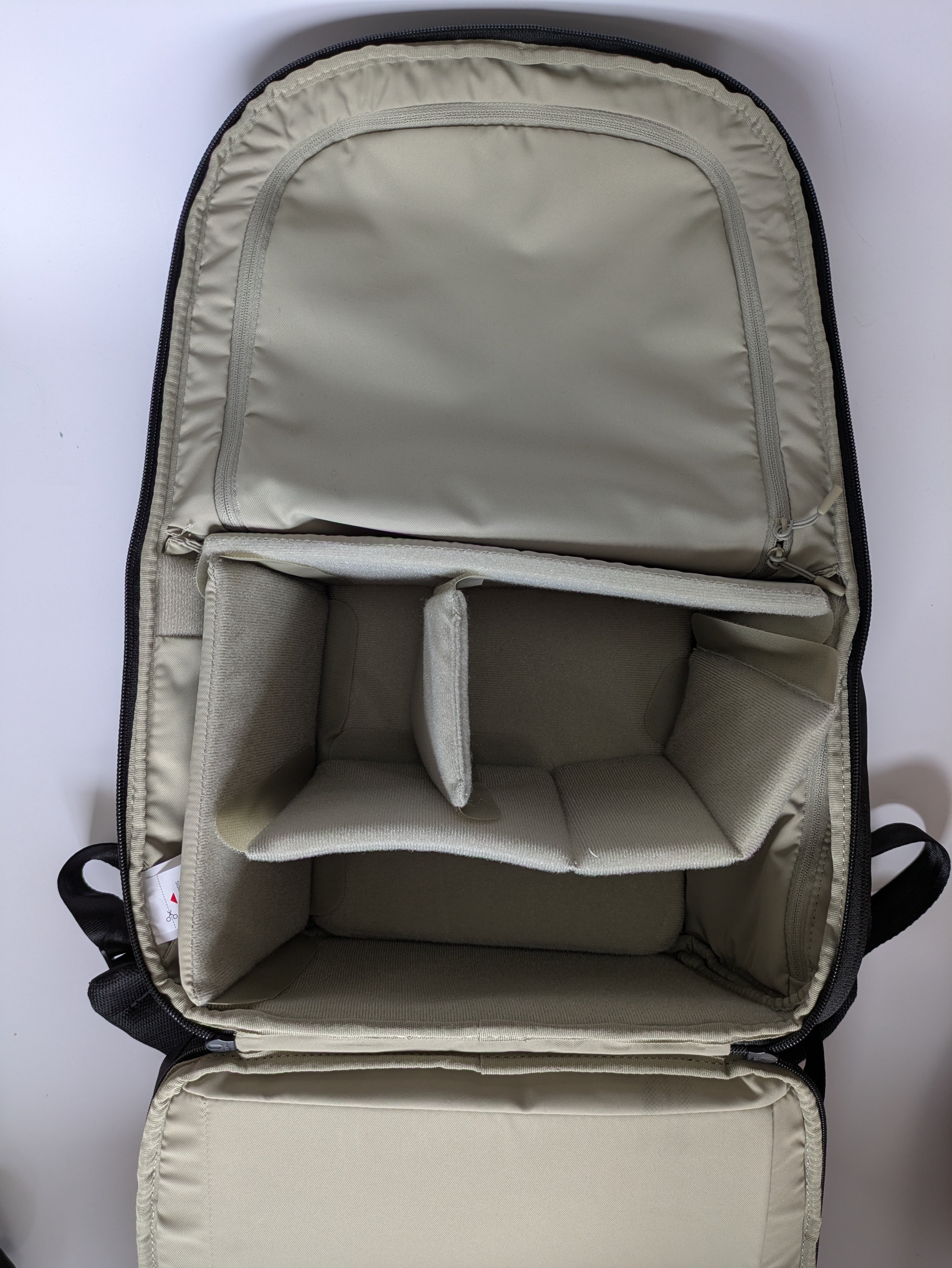 収納面では、背面が180°フルオープンするクラムシェル構造が非常に使いやすいです。リュックタイプのカメラバッグでは割と一般的かと思いますが、旧OneGo バックパックの方は微妙に使いづらかったのでこの点は改良されたなと感じます。