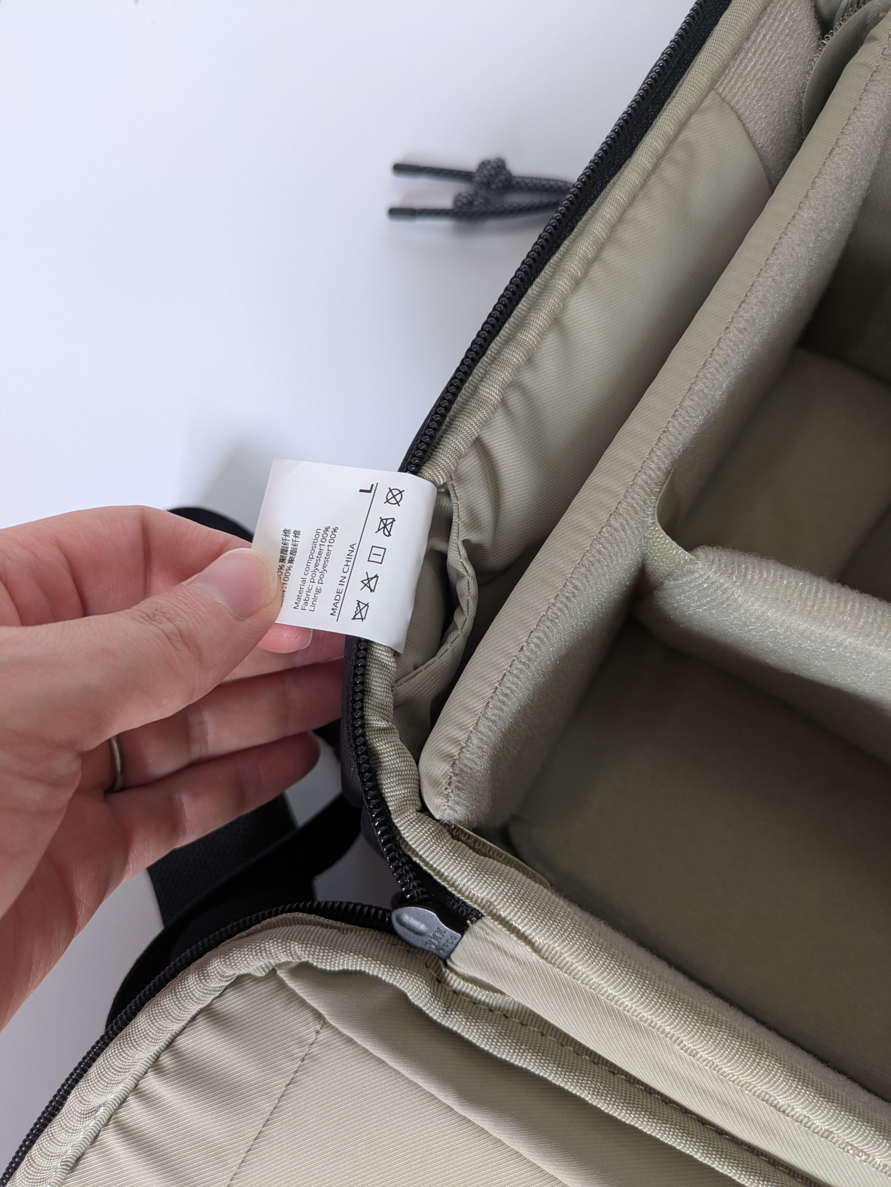 特に最初に背負った時に驚くのが、その軽さです。内部の仕切りを全て含めた状態でも、重量はわずか1.25kg。これは1.5Lのペットボトルよりも軽い数値です。