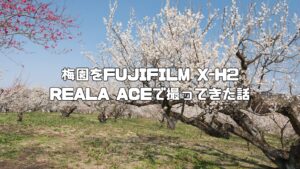 持っていったカメラはFUJIFILM X-H2、レンズはXF16-55mmF2.8 R LM WR ⅡとXF50-140mmF2.8 R LM OIS WRの2本構成。フィルムシミュレーションはREALA ACEに固定して撮影してきました。この記事では、梅園の様子や機材の使い心地を撮ってきた写真と一緒にお届けします!